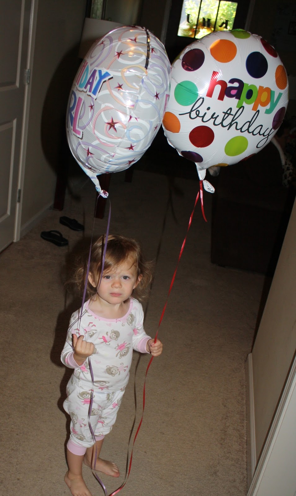 We surprised you with balloons when you woke up on your birthday. You loved them!